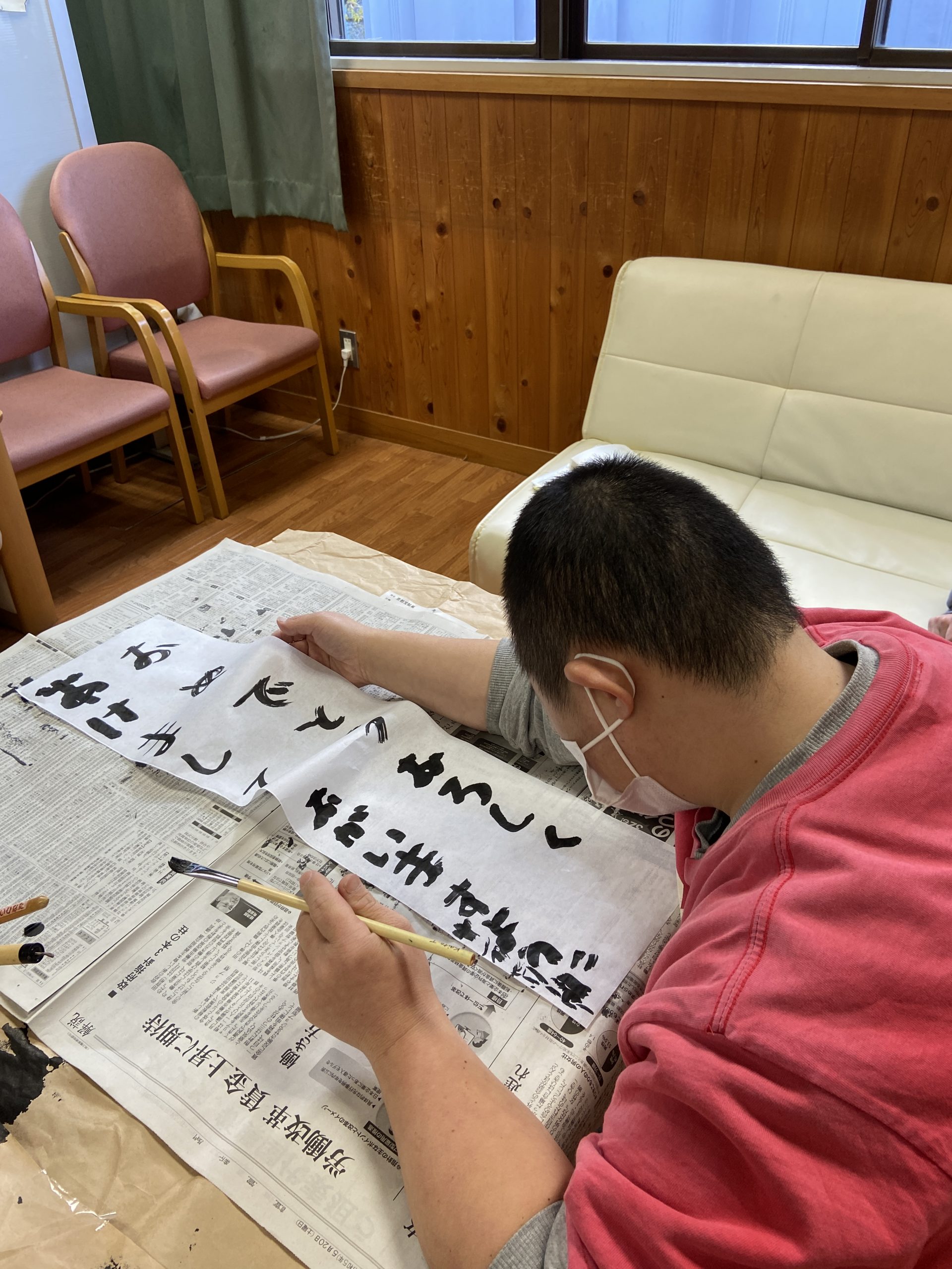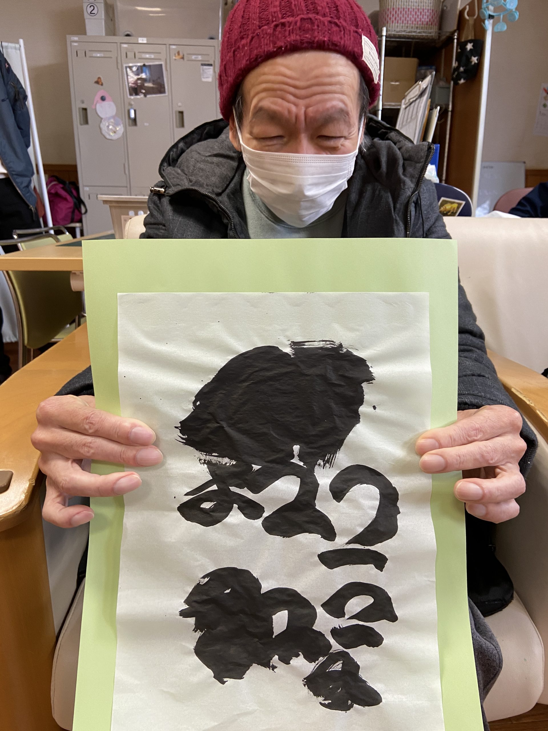 のびのびと、楽しそうに書初めをされているご利用者様を見て懐かしいと共にほっこりした時間を過ごさせて頂きました。